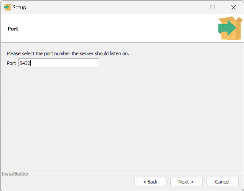 Step 7\. Specify a port number on which the PostgreSQL database server will listen. The default port of PostgreSQL is 5432\. Ensure that no other applications are using this port.
